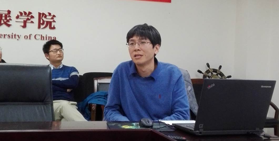 卢昆作了题为“蓝色粮仓建设基本问题探讨”卢副教授向与会师生介绍了“蓝色粮仓”概念的基本内涵,将“蓝色粮仓”分为了四大类,最后介绍了“蓝色粮仓”的功能定位和其建设模式的选择。