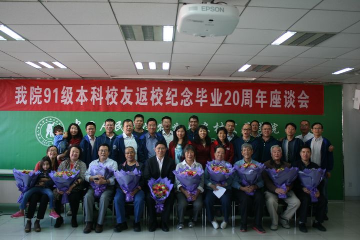 座谈会后91级返校校友为老师们献上鲜花和小礼物,大家一起合影留念。