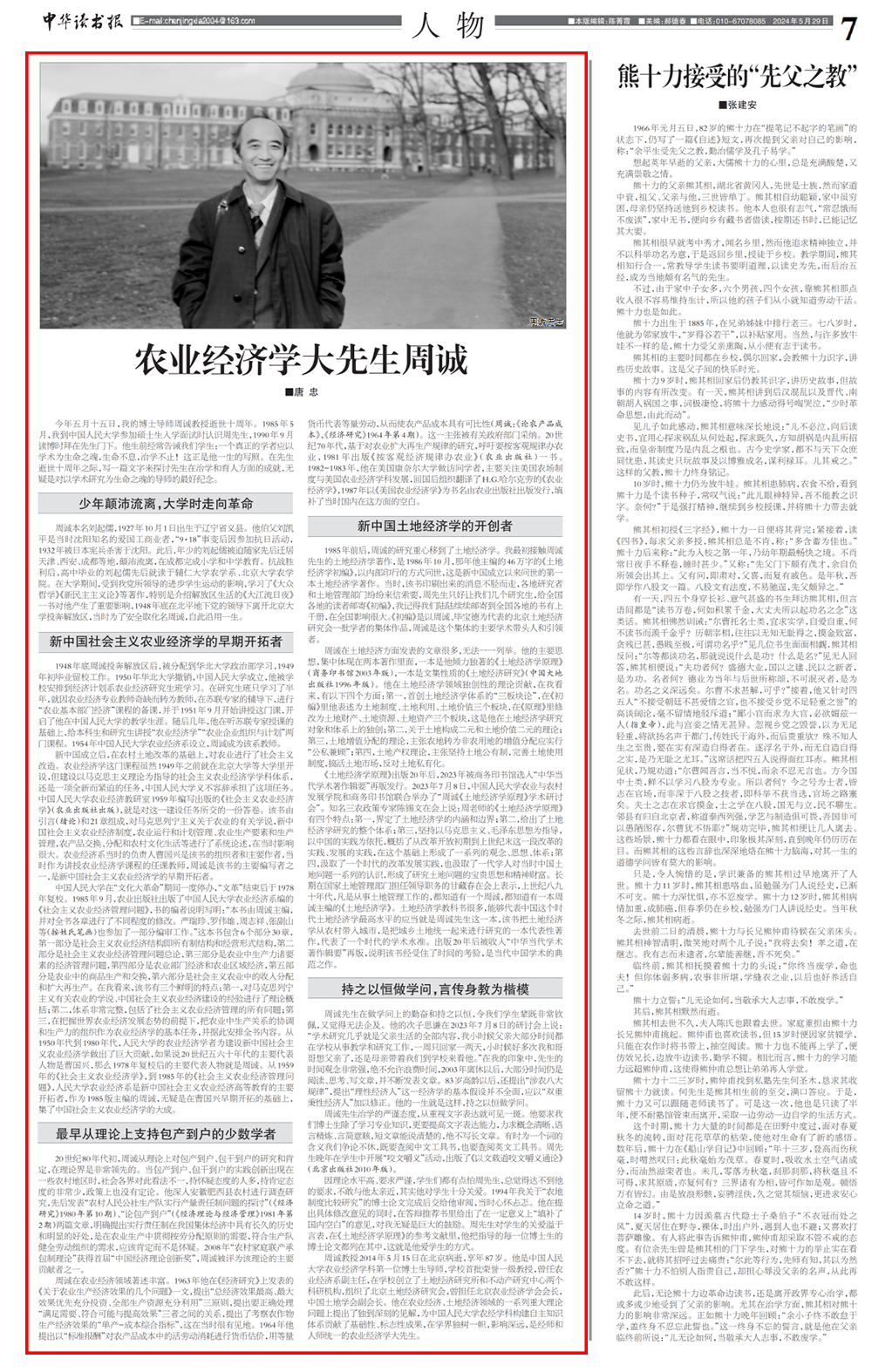 农业经济学大先生周诚