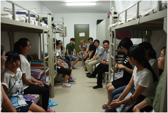 各位领导与新生班班主任老师一起,来到新生宿舍,了解同学们的住宿和适应情况。院长唐忠教授、副院长庞晓鹏教授与本科班主任高原、赵云两位老师来到本科生宿舍,与本科生们亲切交谈。唐忠院长还以自己求学时经历勉励大家好好利用学校和小說狂人