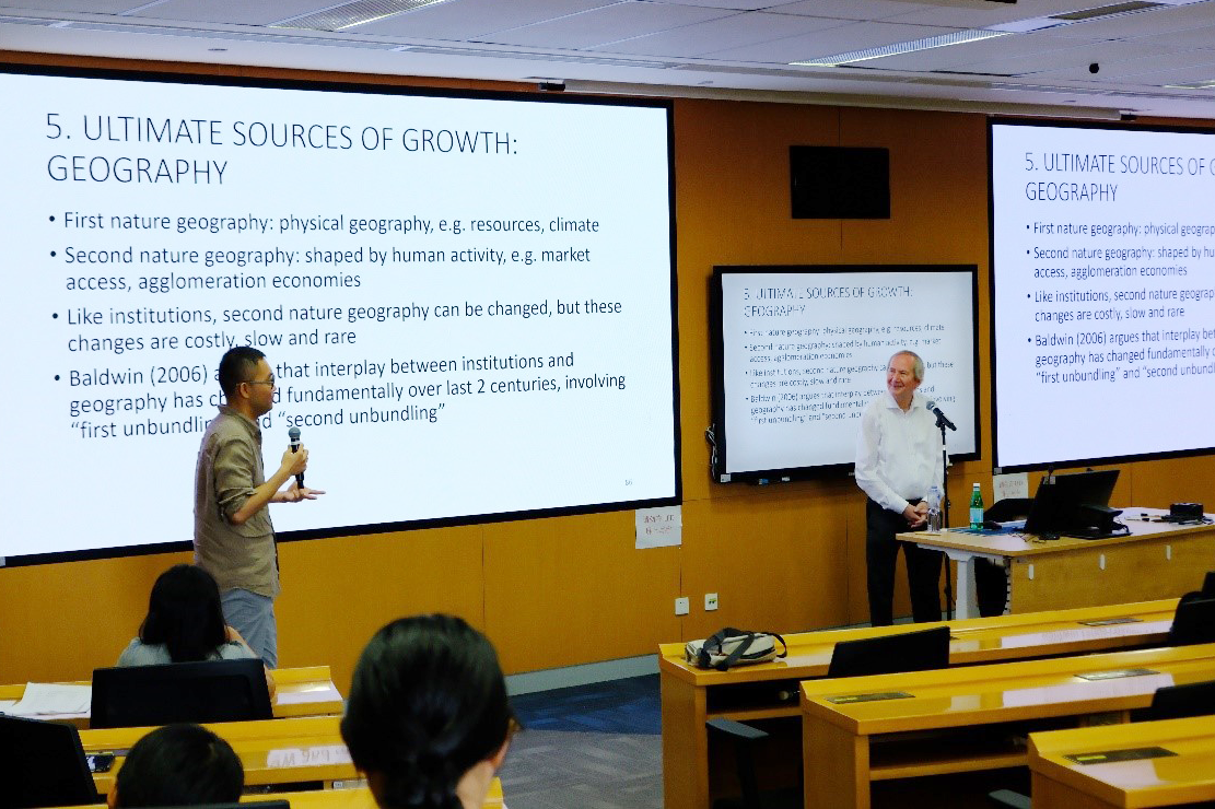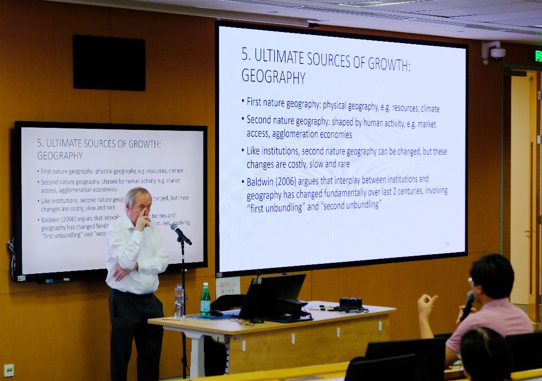 在互动问答环节,现场师生就“地区发展差异”和“技术溢出效应作用于经济发展”等问题与布劳德伯利院士进行了深入交流,讨论气氛热烈。本次讲座内容丰富、数据详实,为理解全球经济发展的历史进程进一步提供了新颖视角。