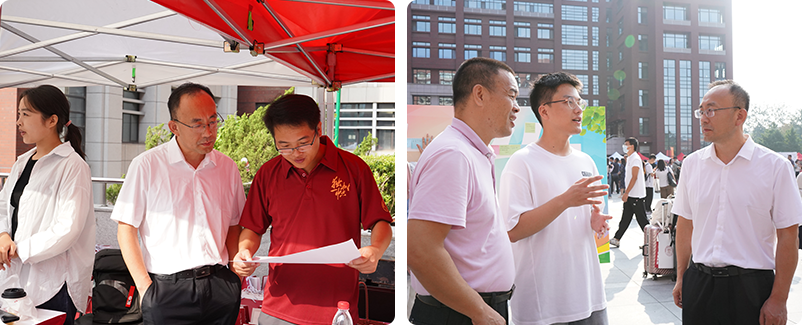 党委书记张东刚、校长林尚立等全体校领导在迎新现场与前来报到的新生亲切交流,并慰问志愿者和工作人员。校领导详细询问了同学们的情况和来校后的感受,对新生们的到来表示热烈欢迎,勉励同学们珍惜大学时光,得良师、结益友,以饱满的热情迎接新的校园生活。