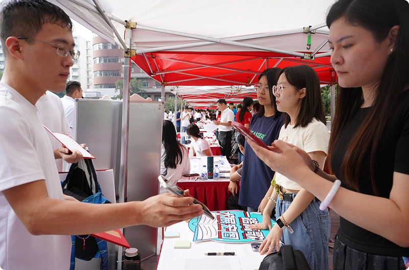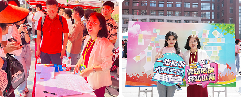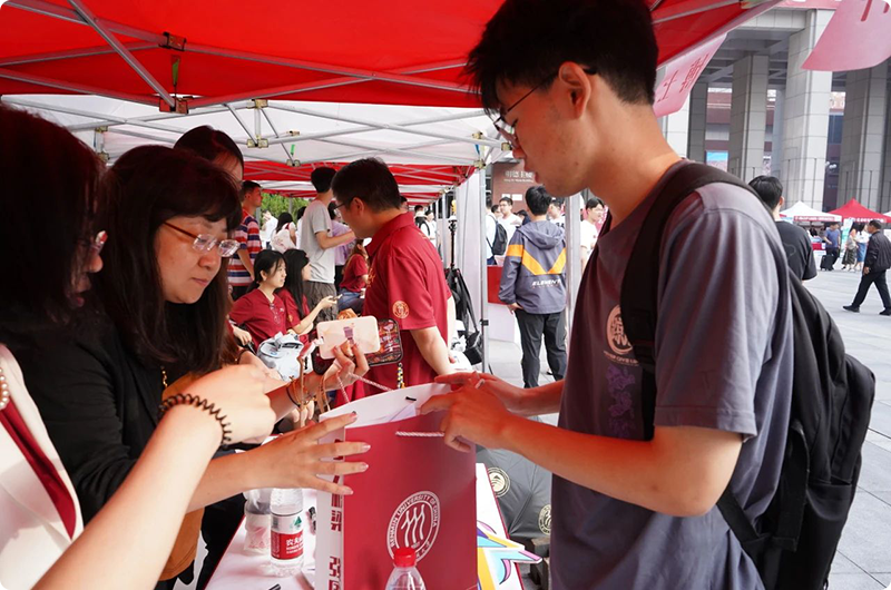 报到台,指导迎新工作并与报到的学生热情交谈、留影,为新生们留下校园里的第一张照片,定格成长历程中的重要一刻。