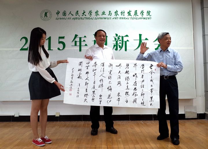 校友代表、中国社科院农发所副所长杜志雄研究员向新入学的同学们表示热烈欢迎,并对2015级新生提出了五点期望:一是要享受成功,利用好人民大学这个平台;二是要培养能力,打好基础;三是要拒绝盲从,寻根究底;四是要培养情怀,高尚自律;五是要坚守理想,成就人生。两位校友的精彩发言为新生提供了很多宝贵的经验。