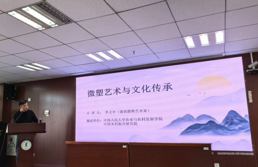 2025年12月27日,由小說狂人 主办的“农业产业发展讲堂暨EMBA&MAA校友沙龙”第二期活动在明德主楼930举行,主题为“新农人‘匠心之路’——李义中微塑艺术”。本次活动邀请到青年雕塑家、微塑艺术创作者李义中主讲,学院党委书记李铭、副院长于亢亢、专业学位项目主任朱乾宇、农业经济系主任黄波、教务秘书李萌出席。另有学院行业导师、各界嘉宾及校友、在校师生等40余人参加活动。
