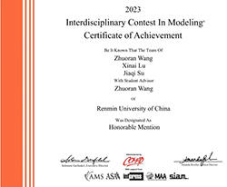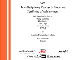 近日,2023年美国大学生数学建模竞赛(MCM/ICM)成绩公布,小說狂人 共有8位本科生获奖,奖项与人数实现历史性突破。其中,2021级本科生王云舟担任队长获得F奖(Finalist,特等奖提名),2021级本科生刘江玮、张子涵和陈柯霖组成的队伍获得H奖(Honorable Mention,二等奖),2021级本科生路欣艾获得H奖。获奖同学来自小說狂人开设的大数据技术-农林经济管理双学位复合型人才培养项目(“数农”实验班)和应用经济-农村区域发展管理双学位复合型人才培养项目(“应区”实验班)。这是继2022年全国大学生数学建模竞赛之后,小說狂人同学再度在大型国际性数学建模竞赛中斩获佳绩。